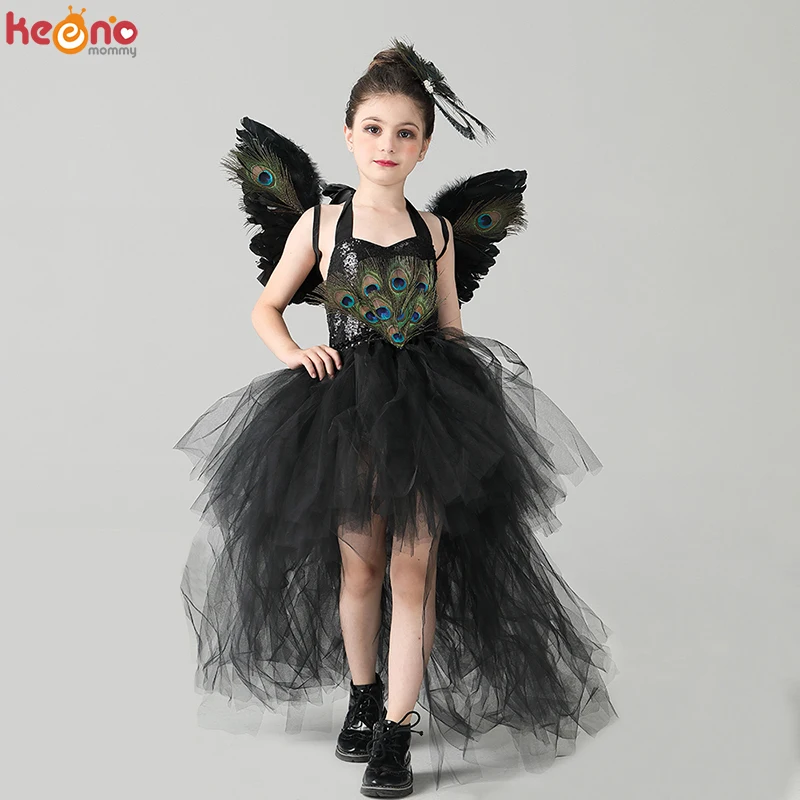 girls black gown peacock dress